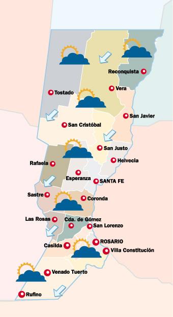 | | lunes, 01 de noviembre de 2004 |  | | Hoy | | Máx30º | | Mín 16º | Neblinas y bancos de niebla. Algo nublado. | | Mañana | | Máx28º | | Mín 14º | Inestable, ventoso y fresco. Leve descenso de la temperatura. Vientos leves del sector noroeste. | | Pasado | | Máx27º | | Mín 13º | Lluvias intermitentes. Ventoso y fresco. Descenso de la temperatura. Vientos leves | | | | |  | "No había otra solución posible más que la pesificación" Carlos Heller Gerente general del Credicoop y titular de Abappra | Ver noticia | |  | Escorpio - 24/10 al 21/11 | | | |