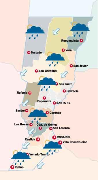 | | martes, 14 de diciembre de 2004 | |  | | Hoy | | Máx32º | | Mín 19º | Probables tormentas, luego mejorando. Húmedo. Nublado. Vientos leves del noreste. | | Mañana | | Máx31º | | Mín 26º | Inestable, caluroso y húmedo. Probabilidad de lluvias. Mejorando hacia la noche. Vientos moderados del sudoeste. | | Pasado | | Máx30º | | Mín 25º | Inestable y húmedo. Leve descenso de temperatura.Nublado. Vientos leves del norte. | | | | |  | "Venimos de una Argentina desde el infierno; peleamos con desventaja porque somos un país que debe 150 mil millones de dólares y está acosado por todos lados. Pero esta vez no hay bandera de rendición" Néstor Kirchner Presidente de la Nación | Ver noticia | |  Agregar a favoritos | |