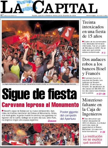 | | martes, 14 de diciembre de 2004 | |  |  | "Venimos de una Argentina desde el infierno; peleamos con desventaja porque somos un país que debe 150 mil millones de dólares y está acosado por todos lados. Pero esta vez no hay bandera de rendición" Néstor Kirchner Presidente de la Nación | Ver noticia | |  Agregar a favoritos | |
