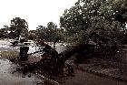 La lluvia y el viento también tiraron abajo un inmenso árbol del parque Independencia, que cayó sobre la calle y requirió el corte del tránsito en Oroño a la altura de Cochabamba.