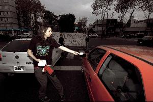 "Los animales sufren. ¿Eso te divierte?" se leía en la pancarta que desplegaron jóvenes en la esquina de 27 de Febrero y Oroño, frente al Circo Servian, en defensa de los animales que están en cautiverio para el espectáculo.